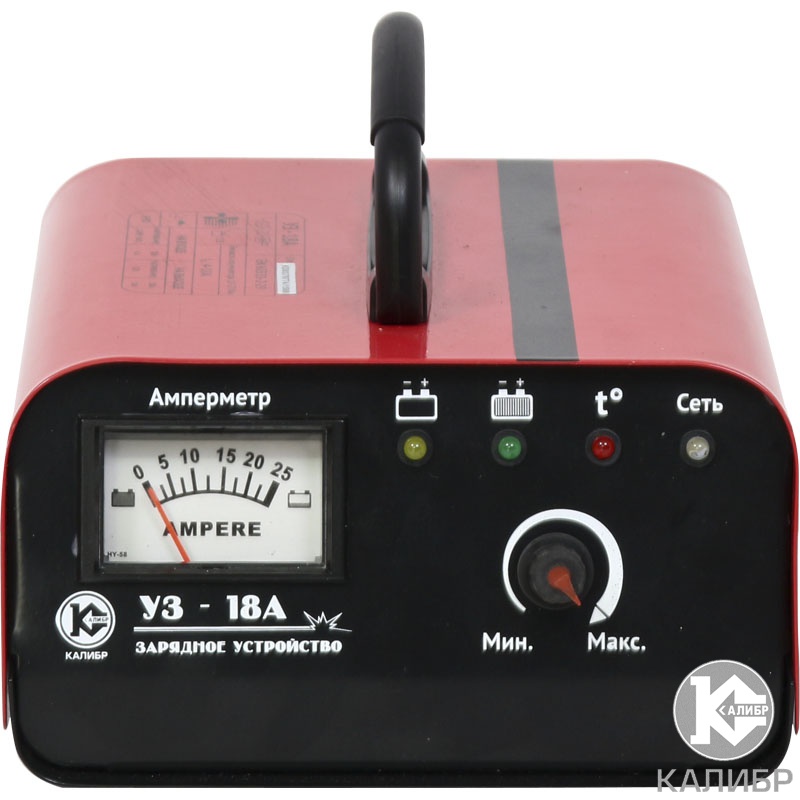 Зарядное устройство Калибр УЗ-18А предназначено для зарядки аккумуляторных батарей (А.Б.) бензиновых и дизельных двигателей автомобилей, мотоциклов, лодок (6В, 12В и 24В) и т.п.