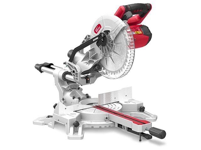 На пиле установлен мощный двигатель c высокой производительностью, имеется система пылеудаления, лазерный указатель для более точного реза, металлические скользящие полозья, плавный ход реза, система удобного зажима заготовки, точный рез, Быстрая регулировка глубины и ширины реза.